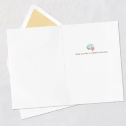 Greeting card features an intricate quilled paper design of Disney Princess Ariel from “The Little Mermaid.” Greeting is a work of art that displays beautifully in a 5×7 frame (sold separately), making it an unforgettable way to share wishes of dreams come true for a birthday, wedding and more. Crafted using the ancient art of quilling, in which small strips of paper are hand-rolled, coiled, shaped and individually placed to create a beautiful and detailed piece of art, this Hallmark Signature card was designed in collaboration with Quilling Card LLC, a company seeking to promote the art of paper quilling.