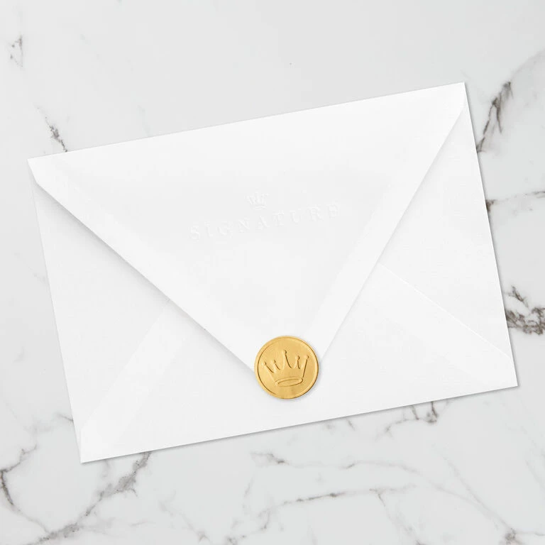 - Includes one card and one lined envelope with a Gold Crown seal. Envelope color may vary.