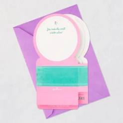 Pop-up Mother’s Day greeting card features a laser-cut, three-dimensional scene of Snoopy from Peanuts holding a bouquet of flowers for her in a 3D molded plastic snow globe-style design. Musical card plays a cheerful instrumental tune while confetti blows inside when button on front is pressed. Simply unfold the card (no assembly required) to create a fun surprise that can be displayed all year long. When open for display, 3D pop-up card measures approx. 7.13″ H.