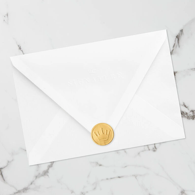 - Includes one card and one envelope with a Gold Crown seal. Envelope color may vary.
