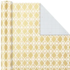 - Pack includes 4 holiday wrapping paper rolls in assorted designs: lettering and snowflakes on dark blue, winter greenery on white, white stars on gold, green and blue, and deer and forest scene on light blue.